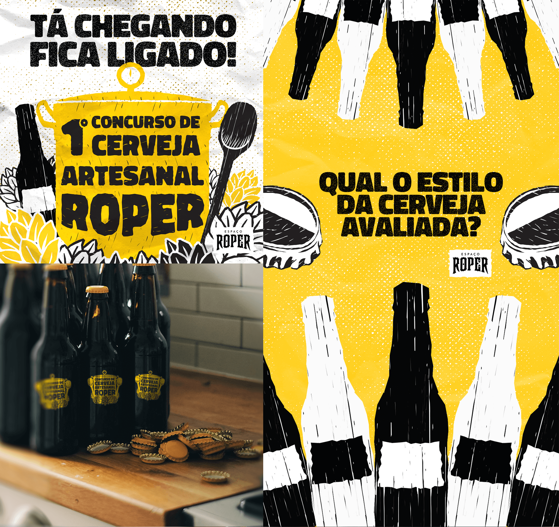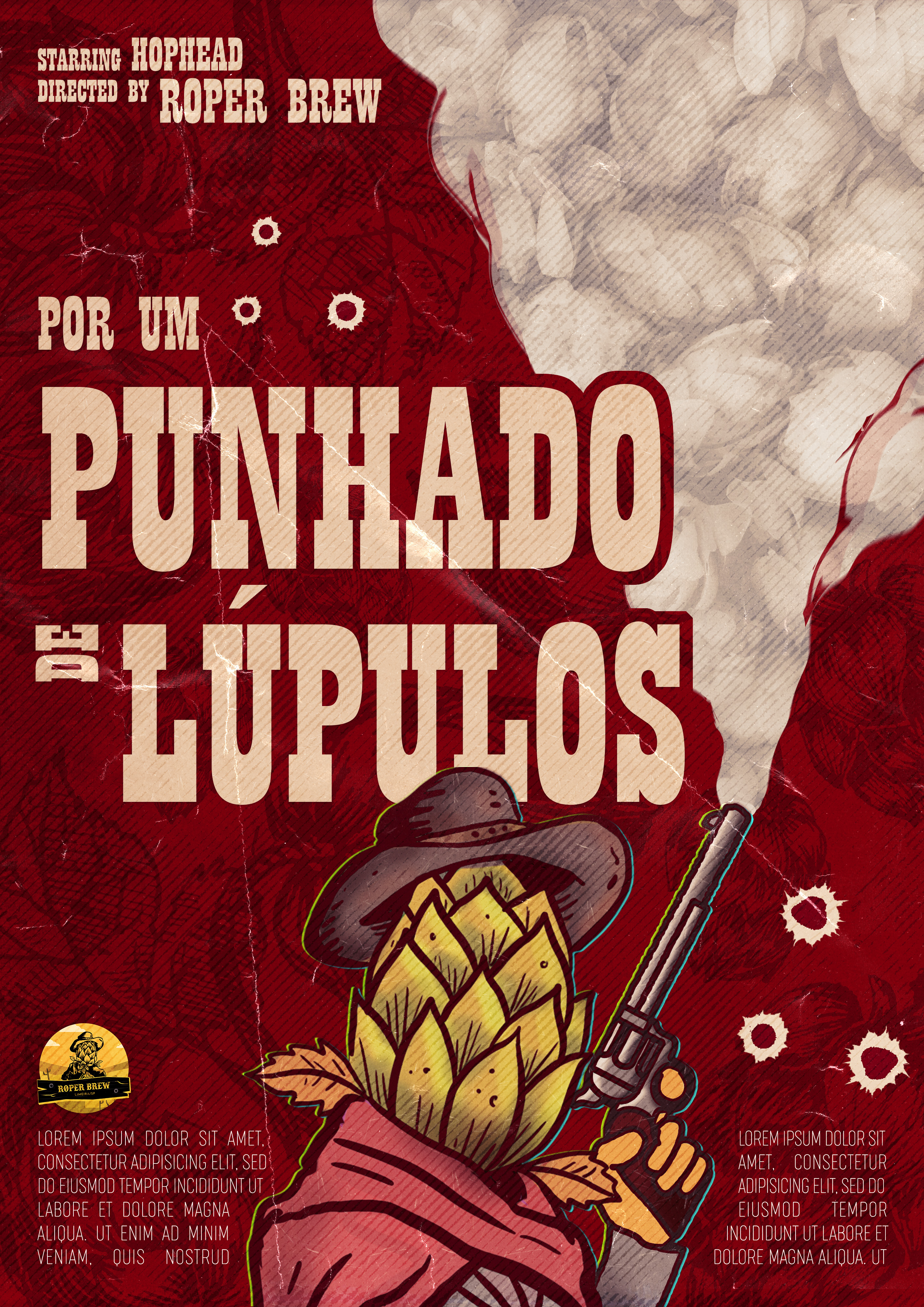 Branding and poster design for the Espaço Roper artisanal brewery. Each beer features a unique Old West theme, combining traditional graphic design with a cohesive storytelling aesthetic for the craft beer market.